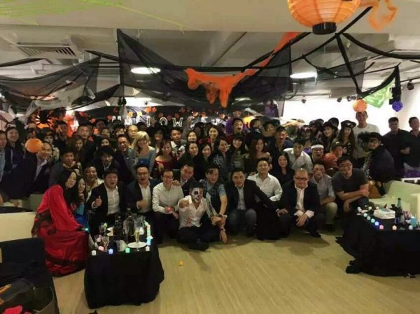 2015年10月30日晚上九时东捷运通企业集团黄鵬董事长以菁英会成员身份,出席在上环盘谷银行大厦举行的由菁英会.福建社团联会青委及华人华侨社团总会青委三方联动的万圣节Party