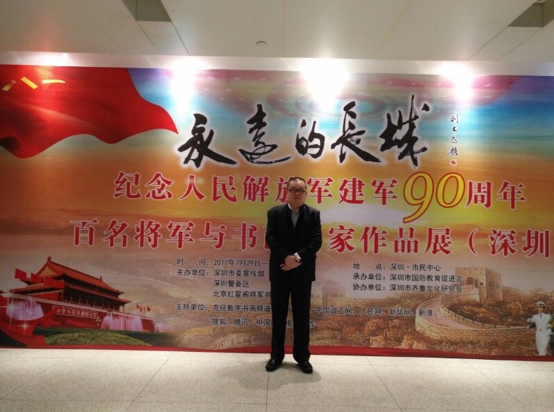 2017年7月29日上午十时,东捷运通企业集团黄鵬董事长,以香港跨境电子商务协会名誉会长身份,出席在福田区市民中心举行,由深圳市委宣传部.深圳市警备区.北京红星阁将军书画院主办